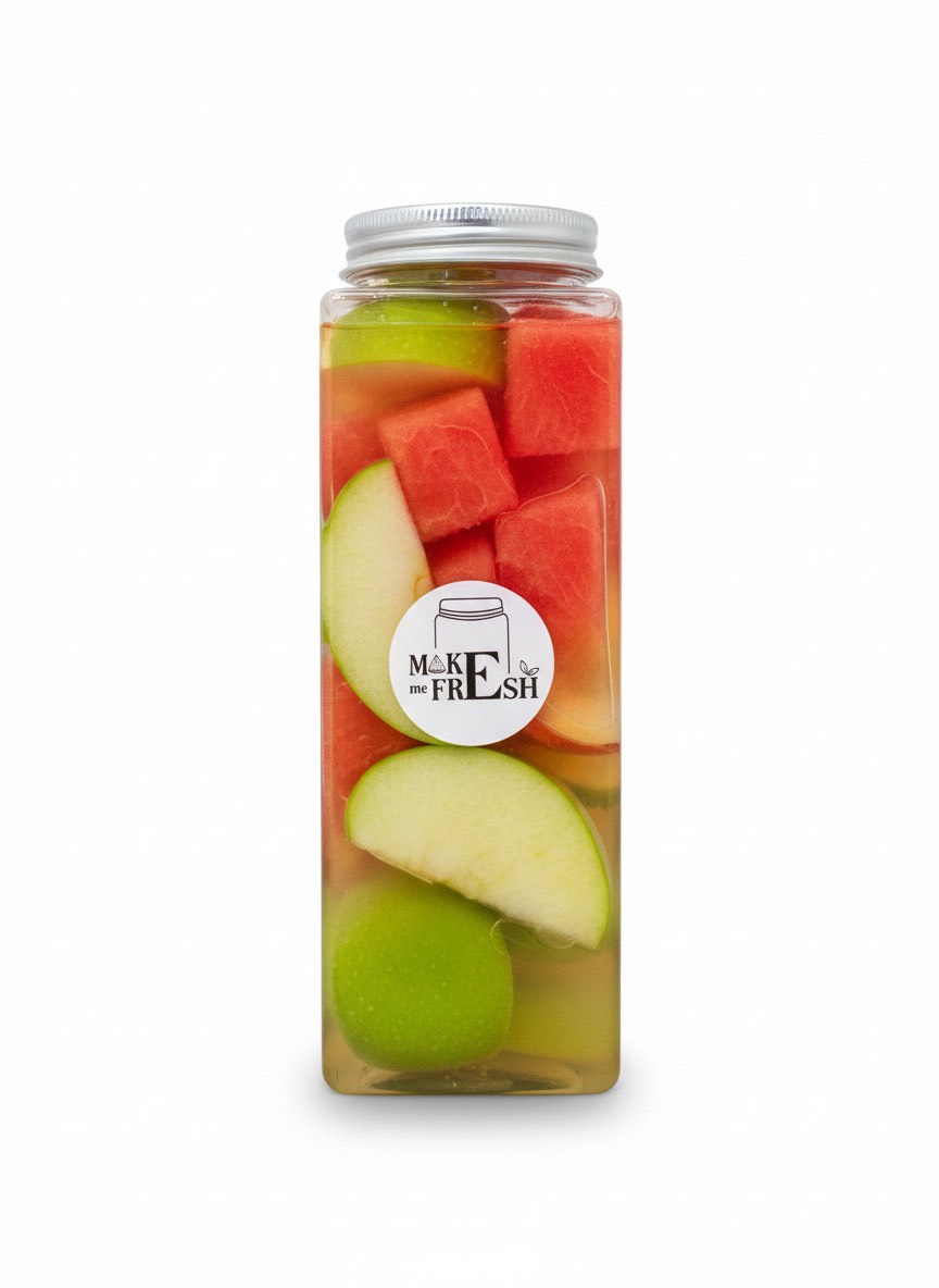 PRE‑ORDER. Brewed fresh after payment. Vibrant jasmine tea and mixed fruits—watermelon, lemon, apple, pineapple, orange. Lower calories and naturally refreshing.